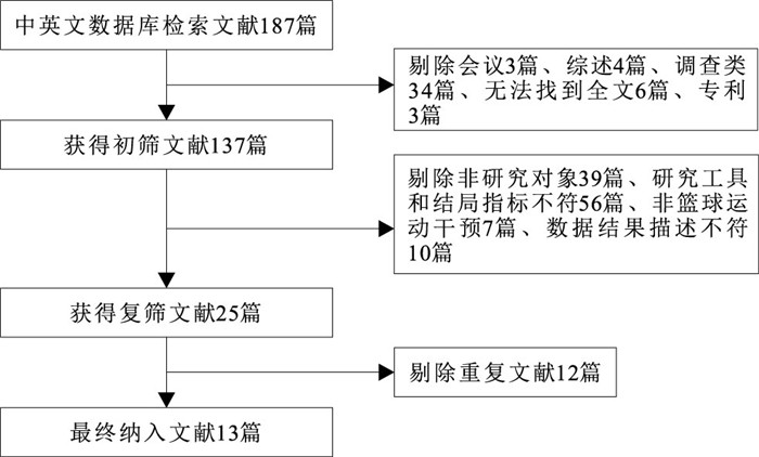 • 摘要:   目的  系统评价小篮球运动对中国4~6岁幼儿上肢力量的影响,为幼儿园小篮球运动的开展和幼儿上肢力量素质提升的研究工作提供循证依据。  方法  以中国知网、万方、维普、PubMed、Web of Science为检索数据库,检索时间为从建库起至2023年7月26日,采用PICOST模式进行文献筛选,最终纳入13篇文献共20项研究,通过Cochrane体系进行文献质量评价,通过Review Manager 5.4和Stata 17软件进行统计分析与发表偏倚检验。  结果  纳入文献研究对象共939名幼儿,其中实验组470名,对照组469名。Meta分析结果显示,小篮球运动对于提升幼儿上肢力量素质影响有统计学意义(SMD=0.83,95%CI=0.53~1.13,Z=5.40,P < 0.01)。亚组分析结果显示,小篮球运动对于幼儿上肢力量素质的提升性别间差异无统计学意义(P>0.05),干预时长≤30 min(SMD=0.49,95%CI=0.29~0.70,Z=4.70,P < 0.01)、运动周期>12周(SMD=1.25,95%CI=0.54~1.96,Z=3.45,P < 0.01)的小篮球运动对幼儿上肢力量能够达到较好的干预效果。Meta回归结果显示,运动干预时长是主要的异质性来源(t=2.71,95%CI=1.38~22.93,P < 0.05)。Egger's test结果显示,纳入研究存在的发表偏倚无统计学意义(t=0.78,P>0.05)。  结论  小篮球运动能提升幼儿的上肢力量,效果受干预时长、运动周期的影响而不同。学校可在体育课中适当增加小篮球运动,促进幼儿上肢力量的提升。