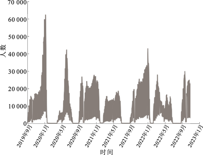 • 图  1  江苏省因呼吸系统症状缺课学生总人数随时间变化趋势