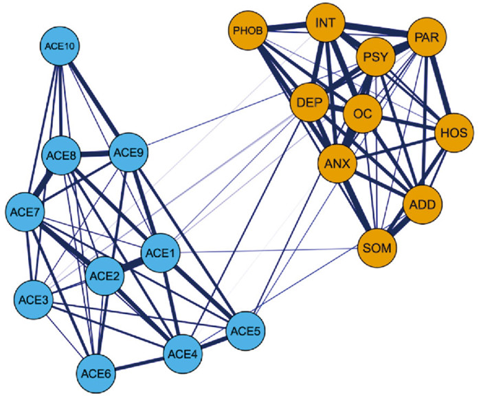 Figure  1.  Network structure of ACEs and SCL-90 among college students