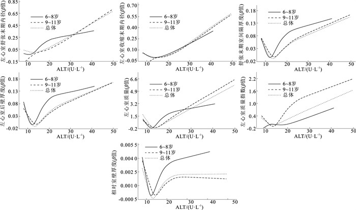 • 图  1  儿童ALT水平与心脏结构指标的剂量反应关系