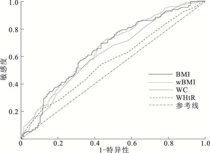目的 评估并比较高中女生体质量指数(BMI)、腰围(WC)、胸围体质量指数(wBMI)及腰高比(WHtR)对握力(HGS)预测的准确性,为评估高中女生整体身体素质及健康状况提供参考。 方法 2022年5—12月,采用整群随机抽样方法从江苏省徐州市12所高中选取1 600名15~18岁女生为研究对象,测量HGS、WC、身高及体重等,并进一步计算BMI、wBMI及WHtR。采用Pearson相关和Logistic回归分析BMI、wBMI、WC及WHtR与HGS的关联。构建受试者工作特征(ROC)曲线,评估不同指标预测HGS的准确性。 结果 Pearson相关分析结果显示,高中女生BMI、WC、wBMI及WHtR与HGS均呈正相关(r值分别为0.31,0.27,0.32,0.14,P值均 < 0.01)。Logistic回归分析表明,高中女生的BMI、WC及wBMI与HGS均相关(OR值分别为2.00,0.47,1.22,P值均 < 0.05),而WHtR与HGS的相关性无统计学意义(OR=0.51,P>0.05)。高中女生BMI预测HGS的曲线下面积(AUC)最大(AUC=0.65,95%CI=0.61~0.69),其次是wBMI预测HGS的曲线下面积(AUC=0.65,95%CI=0.57~0.66)(P值均 < 0.05);敏感度最大的是wBMI(71.5%),其次是BMI(69.4%),敏感度最小的是WHtR(52.3%);WC的特异性最好(61.1%),wBMI的特异性相对较低(52.5%)。 结论 高中女生的BMI、WC和wBMI能够预测HGS强弱,其中BMI和wBMI的准确性和敏感度最大,但wBMI预测HGS强弱的特异性最低。 Abstract:Objective To evaluate and compare the accuracy of body mass index (BMI), waist circumference (WC), waistcorrected BMI (wBMI), and waist-to-height ratio (WHtR) in predicting hand grip strength (HGS) in high school girls, so as to provide the reference for evaluating their overall physical fitness and health status. Methods From May to December in 2022, a total of 1 600 girls aged 15 to 18 years old were selected by cluster random sampling from 12 high schools in Xuzhou, Jiangsu Province. Measures of HGS, waist circumference, height and weight among high school girls were taken, and their BMI, wBMI and WHtR were calculated. Pearson correlation analysis and Logistic regression were used to analyze the association between BMI, wBMI, WC, WHtR and HGS Receiver operating characteristic (ROC) curves were constructed to evaluate the accuracy of different indicators in predicting HGS Results Pearson correlation analysis showed that the BMI, wBMI, WHtR and HGS expression of high school girls were positively correlated (r=0.31, 0.27, 0.32, 0.14, P < 0.01). Logistic regression analysis showed that BMI, WC and wBMI were correlated with HGS expression (OR=2.00, 0.47, 1.22, P < 0.05), while the association of WHtR and HGS expression had no statistical significance (OR=0.51, P>0.05). The area under the curve (AUC) of BMI for predicting HGS expression in high school girls was the largest (AUC=0.65, 95%CI=0.61-0.69), followed by the AUC of wBMI for predicting HGS expression (AUC=0.65, 95%CI=0.57-0.66)(P < 0.05). The most sensitivity was wBMI (71.5%), followed by BMI (69.4%), and the least sensitivity was WHtR (52.3%); and WC had the best specificity (61.1%), whereas wBMI had a relatively low specificity (52.5%). Conclusion For high school girls, BMI, WC and wBMI could predict the strenth of HGS expression, but BMI and wBMI have the highest accuracy and sensitivity, while wBMI has the lowest specificity in predicting the strenth of HGS. -