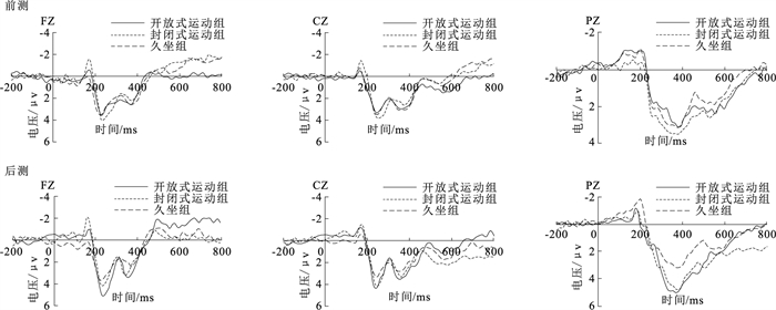 Table  2.   ERP results of the space 2-back task before and after intervention in different groups of sedentary college students(x±s, μv)